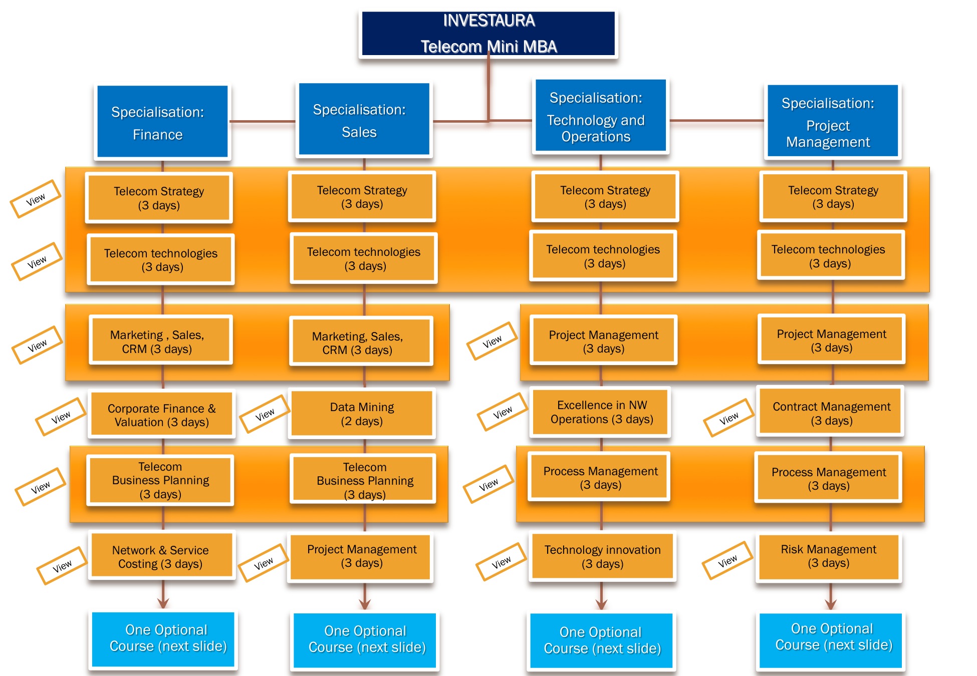 Investaura provides Telecom Mini MBA programmes to its training institute and corporate clients. There are two versions: the one-week Mini MBA; and the one-year programme. Both programmes are highly interactive and combine class-room presentations, case studies, as well as individual and group exercises.